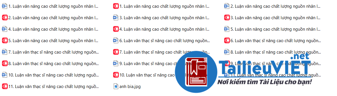 Đề tài luận văn nâng cao chất lượng nguồn nhân lực luôn luôn được quan tâm. Đề tài này thu hút nhiều đọc giả bởi nhu cầu cấp thiết của nó. Xin giới thiệu tới bạn đọc bộ 11 luận văn chủ đề này.