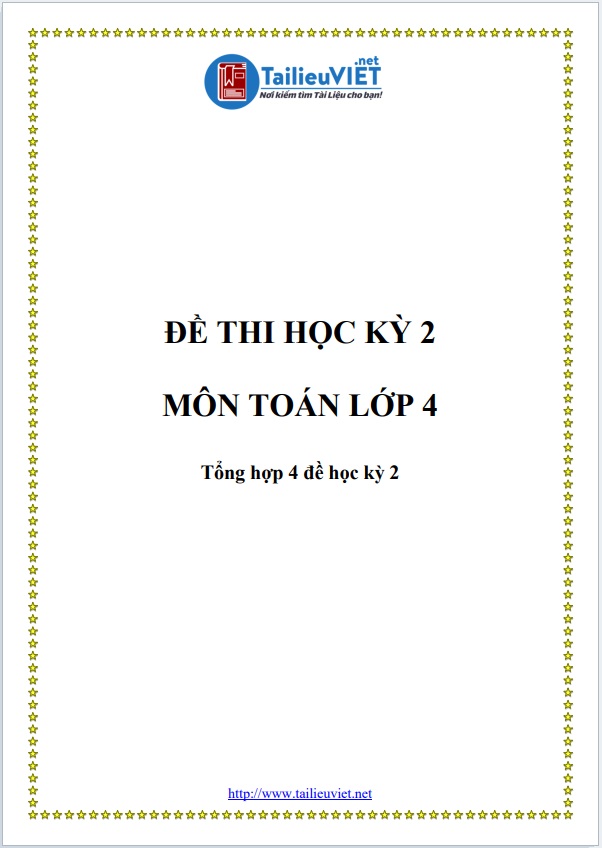 1.Tài liệu 1: 4 ĐỀ THI MÔN TOÁN HỌC KỲ 2 LỚP 4 – CÓ ĐÁP ÁN(FILE WORD)