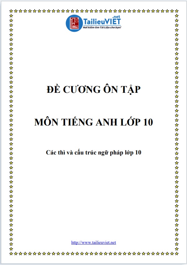 1.Tài liệu 1: ĐỀ CƯƠNG ÔN THI MÔN TIẾNG ANH LỚP 10 HỌC KÌ 2 PHẦN THÌ, NGỮ PHÁP (FILE WORD + PDF)