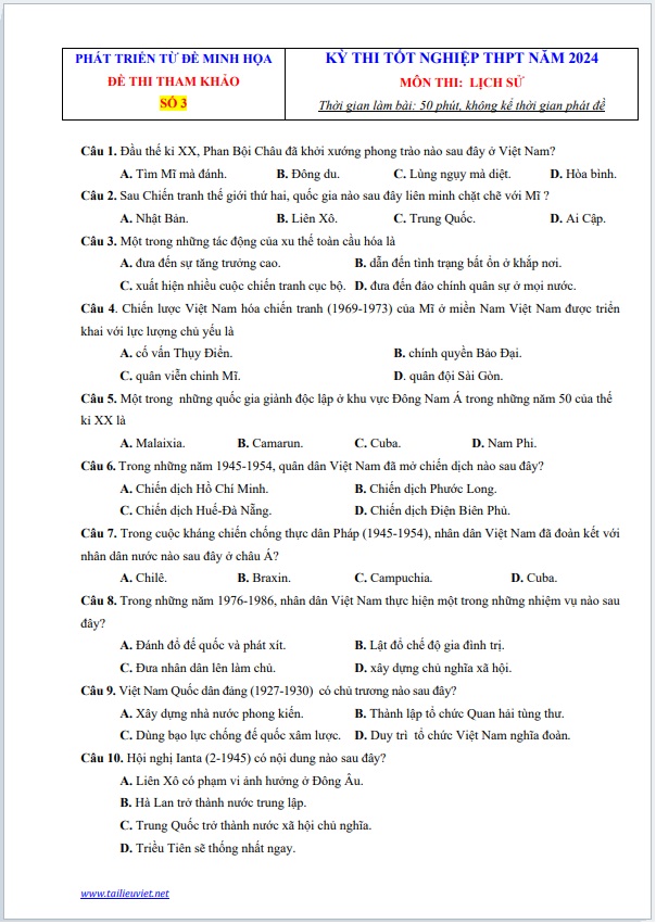 1.Tài liệu 1: ĐỀ SỐ 4 PHÁT TRIỂN TỪ ĐỀ MINH HỌA THI TỐT NGHIỆP THPT 2024 MÔN LỊCH SỬ CỦA BỘ GD&ĐT + ĐÁP ÁN (FILE WORD + PDF)