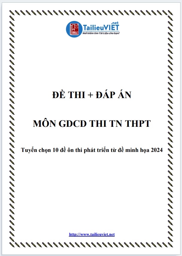 1.Tài liệu 1: TUYỂN CHỌN 10 ĐỀ PHÁT TRIỂN TỪ ĐỀ MINH HỌA MÔN GDCD TỐT NGHIỆP THPT 2024 + GIẢI ĐÁP ÁN (FILE WORD + PDF)