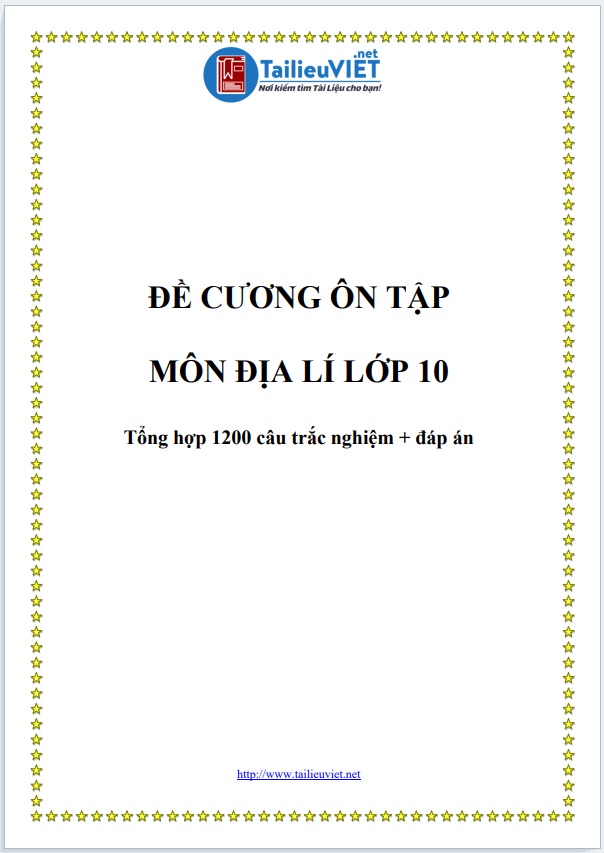 TUYỂN CHỌN 1200 CÂU TRẮC NGHIỆM ĐỊA LÍ HK1, HK2, CẢ NĂM LỚP 10 (FILE WORD + PDF)